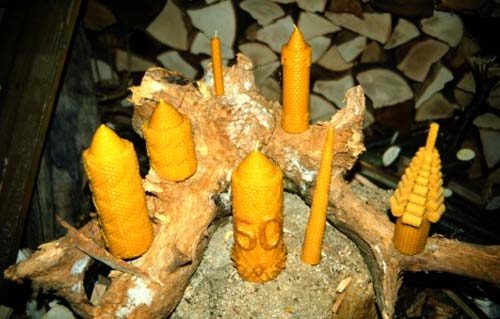 Das überschüssige Wachs kann zu Kerzen verschiedener Art und