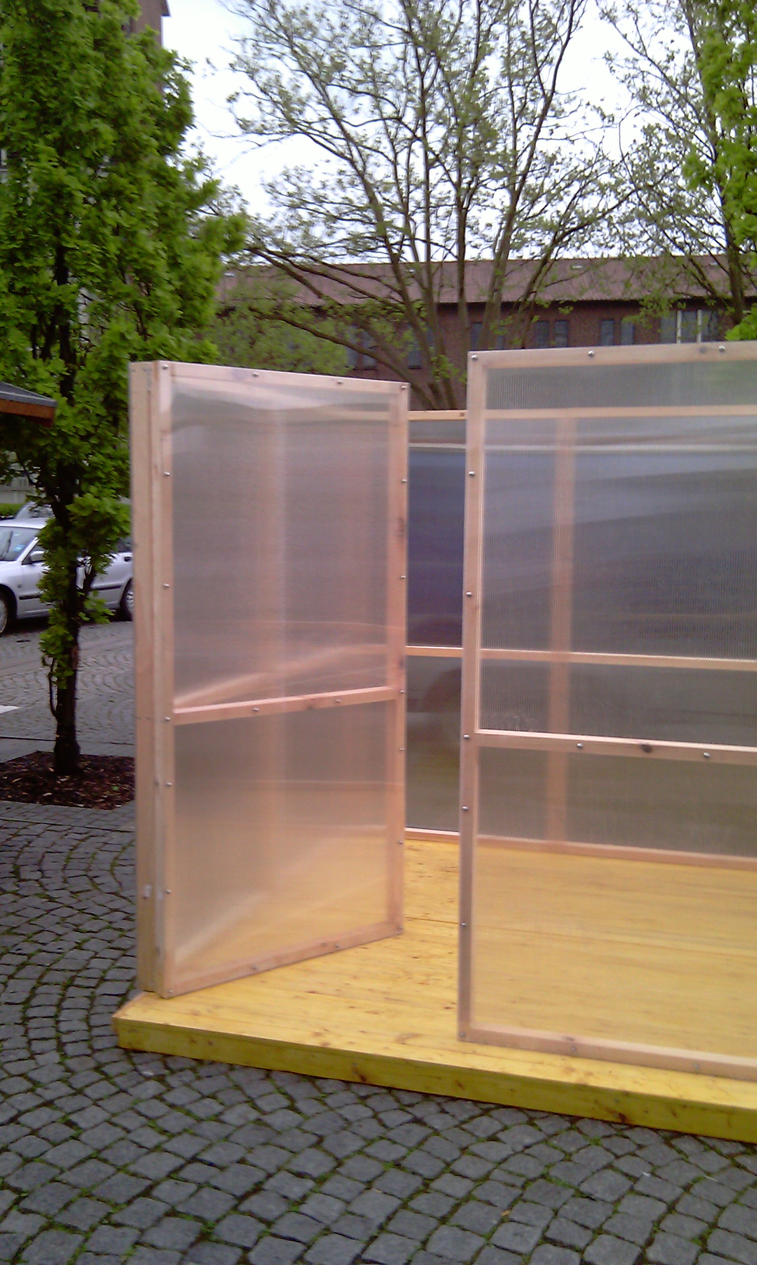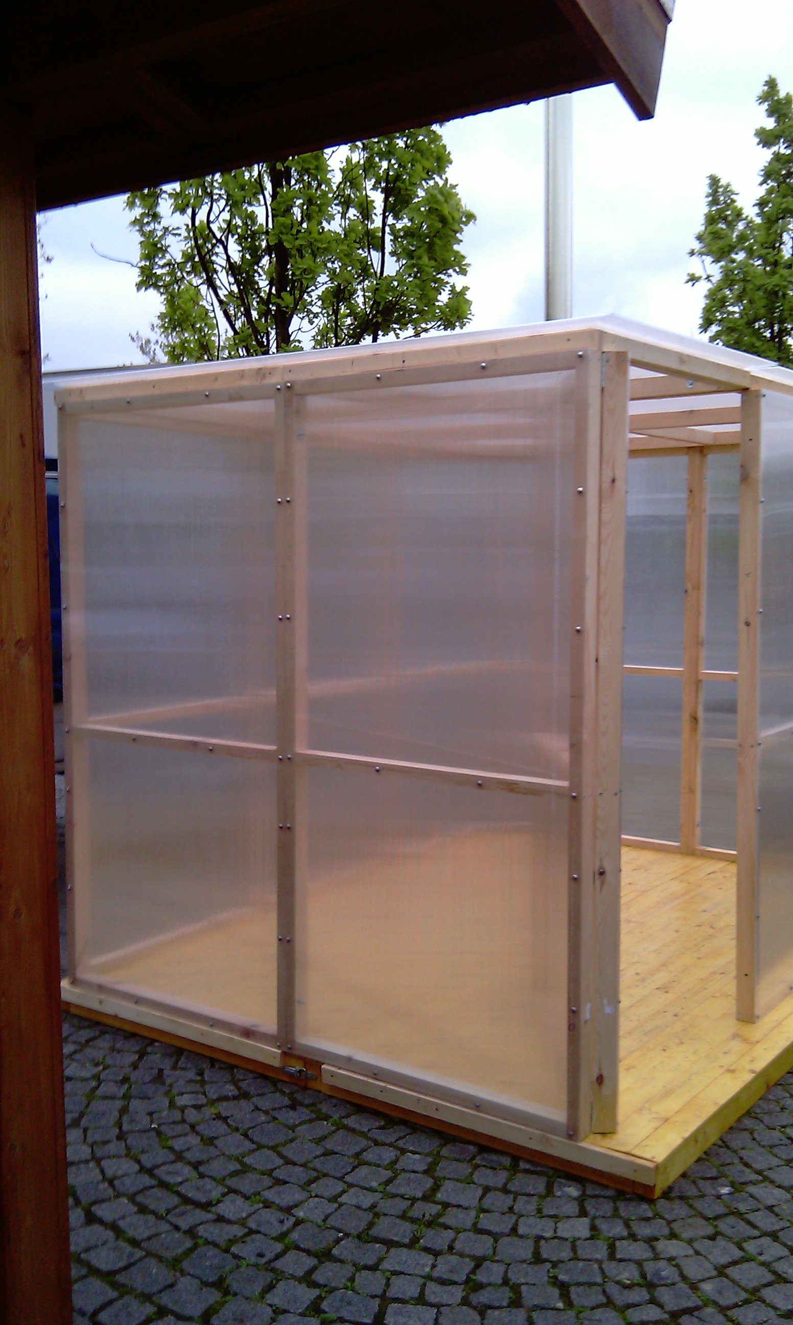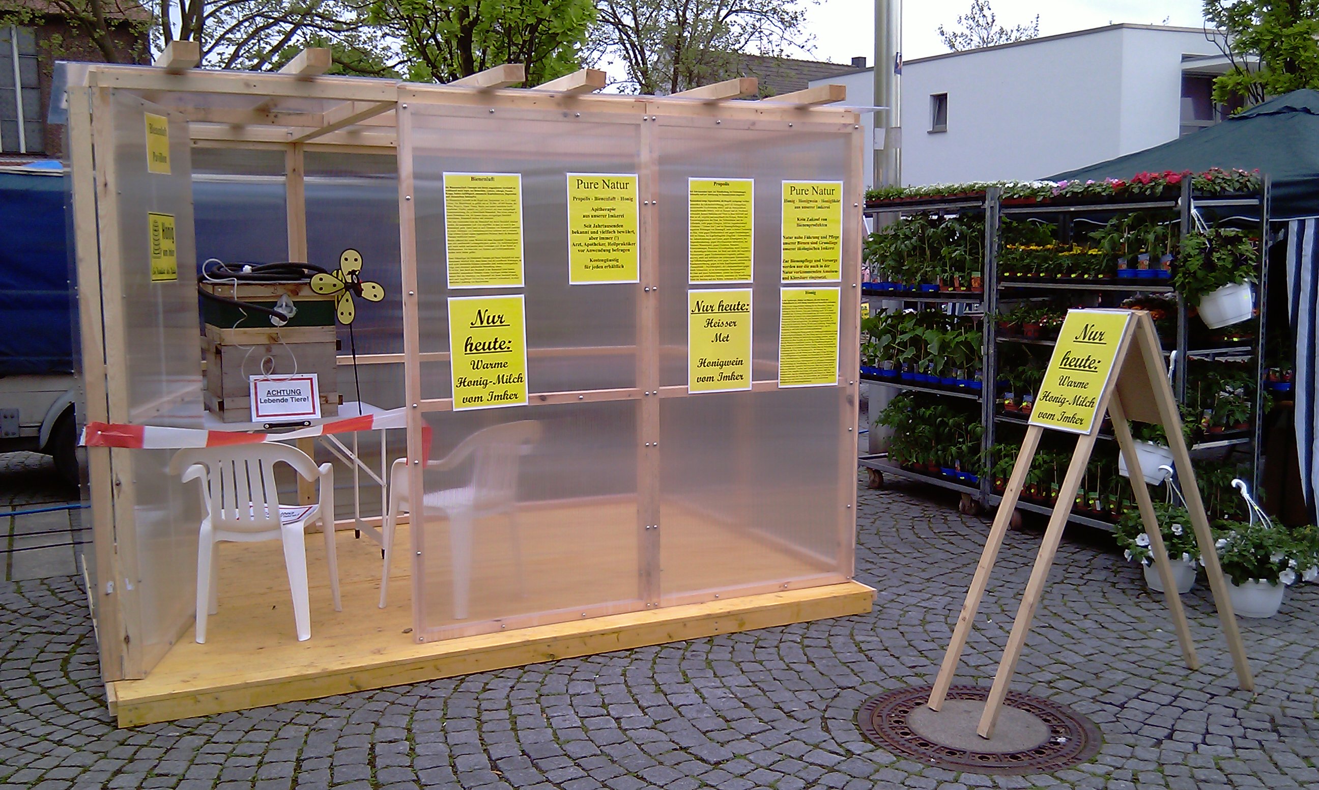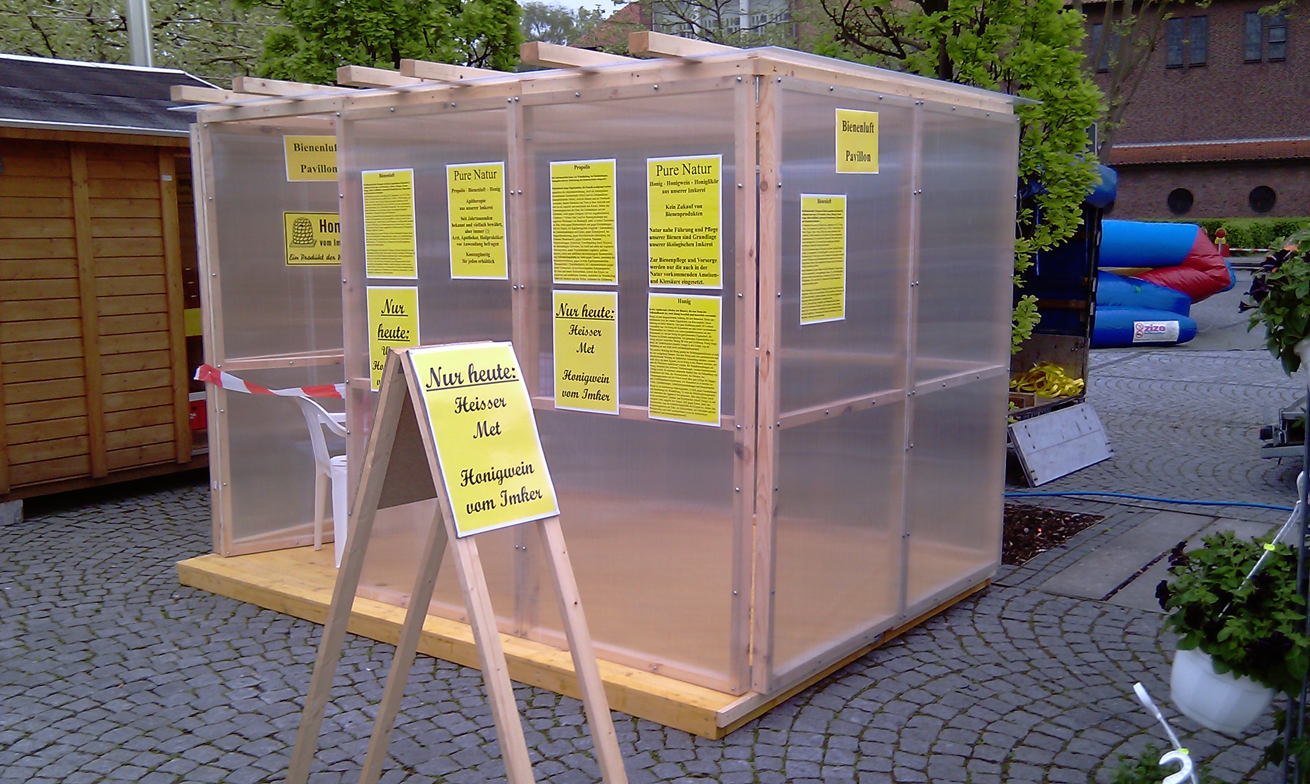 Durch die Modul-Bauweise ist der Bienenluft-Pavillon portabel und der Imker