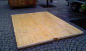 Boden-Elementen, 6 Wandelementen und 3 Dachelementen. Unter und aufgelegt