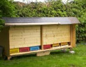 vom Imker Bienen BertEine Bienenbehausung muss nicht langweilig oder gar vergammelt aussehen. Funktionell und dennoch ein Schmuckstück ist kein Problem. Individuell, wie oben abgebildet, oder rein funktionell, wie unten dargestellt, vor dem an die Umgebung angepassten Faerben? Oder ein Bienenstand... Oder Rücken schonend die Trogbeute "Charly"...